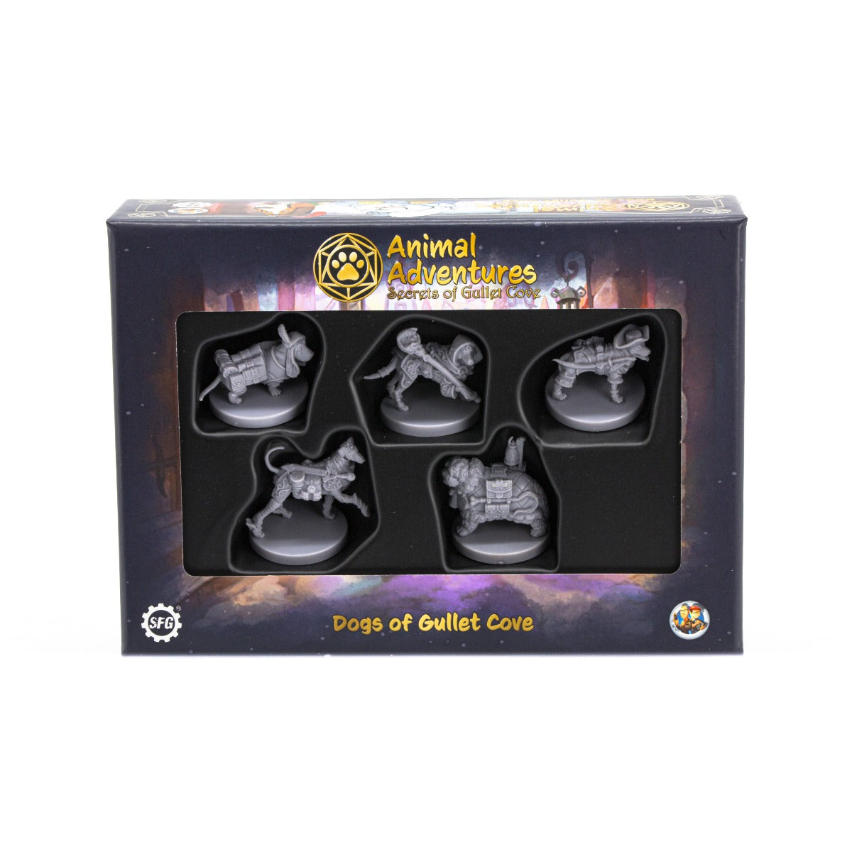 Inside this box you'll find five fully assembled miniatures ready to paint or play. With these faithful friends, you can explore the Animal Adventures world with the Secrets of Gullet Cove sourcebook, or play as an intelligent dog in any fantasy campaign. The only limit is your imagination!