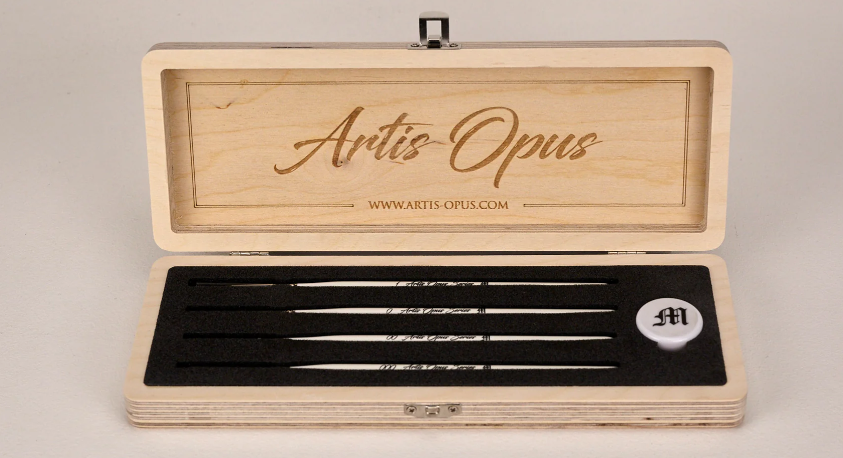 Series M is our take on 'Miniature' brushes. Miniature brushes are characterised by shorter bristles, which offer less flex, and are preferred by many for detail and precision work, or freehand.