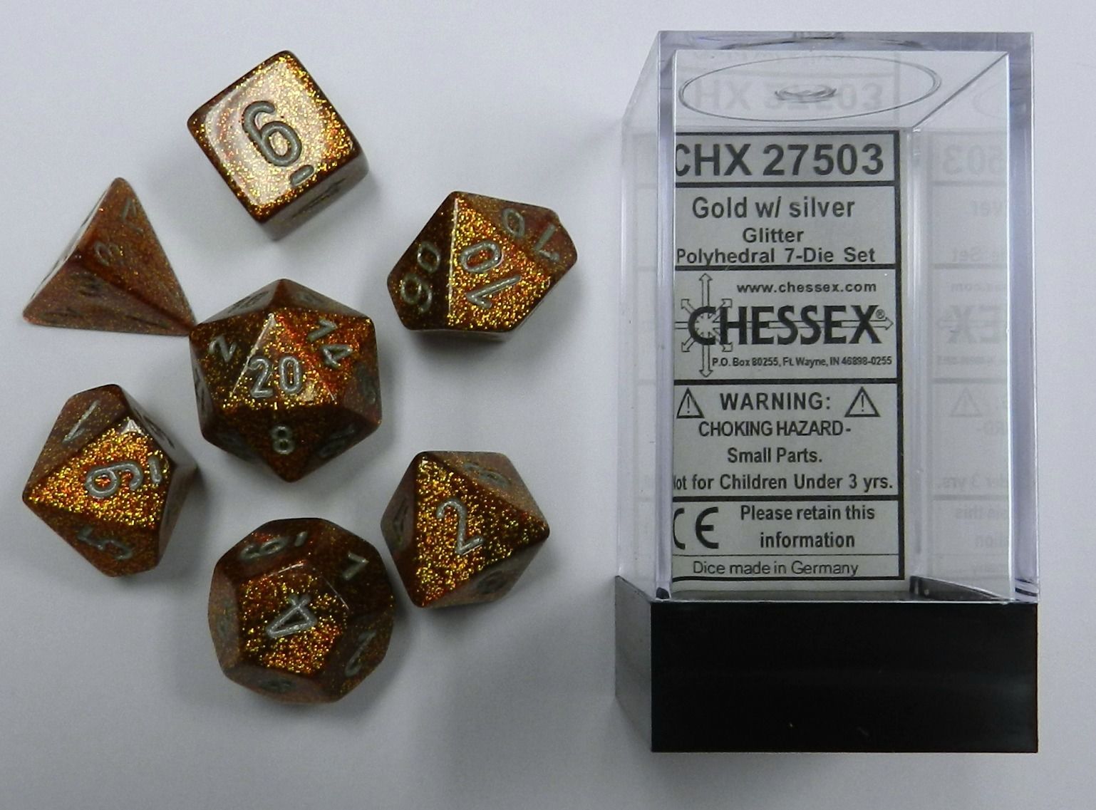 Chessex: Glitter Polyhedral Gold/Silver 7-Die Set