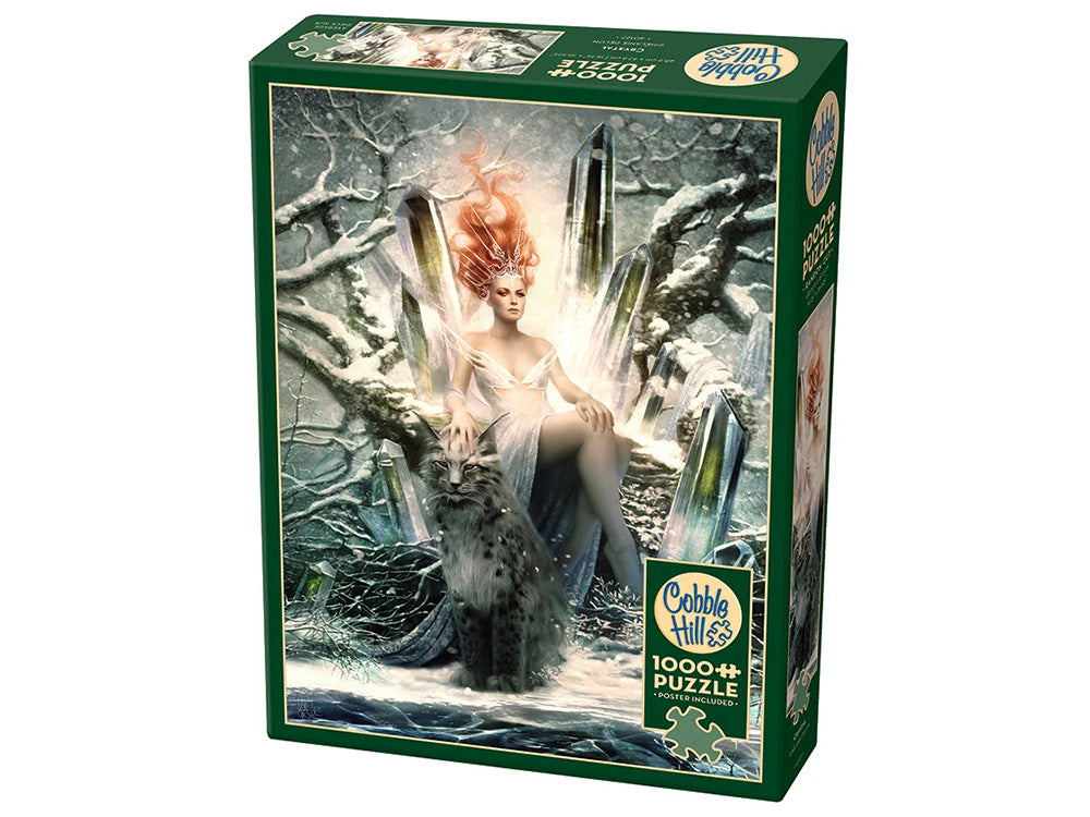 Crystal, the fairy queen, sits upon her icy throne petting her loyal lynx looking regal with her flowy ginger hair. This freezing cold fantasy puzzle is 1000 pieces of magical escapism and feminine power. Cobble Hill was founded in 2005 with a desire to bring loving, whimsical, high-quality images to puzzle enthusiasts around the world! Our puzzles have been described as nostalgic, lively, endearing, sweet, durable, and fine quality.