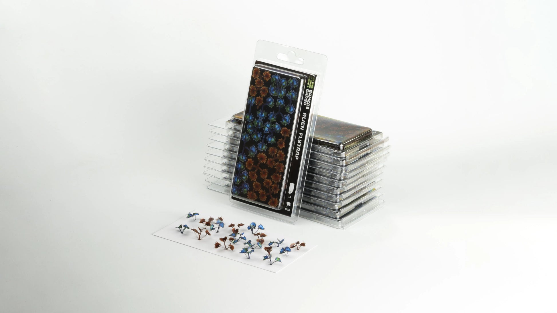 This sheet contains 52 different colored and sized alien flytrap leaves for your scale models, hobby figures and scenic dioramas.