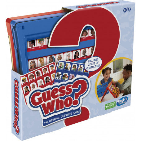 Guess Who? Classic Game It's the classic Guess Who? game “ the original guessing game! Is your person wearing a hat? Does your person have blue eyes? Kids will delight in asking questions about an opponent's mystery character. The first player to guess their opponents mystery character correctly, wins the game! Guess Opponents Mystery Character This Guess Who? game goes back to the tabletop style boards, styled after the original. Each player chooses a mystery character, then using yes or no questions, try to figure out the other players character. When they think they know who their opponent's mystery character is, they take a guess. If the guess is wrong, that player loses the game! Players can also challenge opponents to a series of games in the Championship Series, where the first player to win 5 games is the champion. Ask Quick and Clever Questions Players ask yes-or-no questions about their opponent's card, such as does your character wear glasses? If the answer is no, the asker closes the doors on characters with glasses, leaving the remaining possibilities open. If the answer is yes, they close the doors on characters without glasses. Once a player knows their opponent's character, it's time to make a guess. Who will guess right and win the game? Make Memories with Classic Hasbro Games Whether via a game board with dice, a deck of cards, simple lines drawn on scrap paper, or electronic media, gaming is a global pastime that has enriched culture for millennia. From the classic tabletop board games to up-and-active games for preschoolers, to the laugh-out-loud party games, Hasbro Gaming is a one-stop-shop for filling your games closet. While continuing to produce some of the most memorable games in the history of family gaming, Hasbro Gaming stays current and innovative.