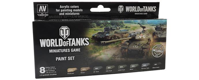 Enhance your tanks with the World of Tanks paint set. This set contains 4 national paint colours, a wash for adding depth to your paint job enough colours to paint details on your tanks like tools and tracks. Contains 8 Vallejo paints and 2 brushes.
