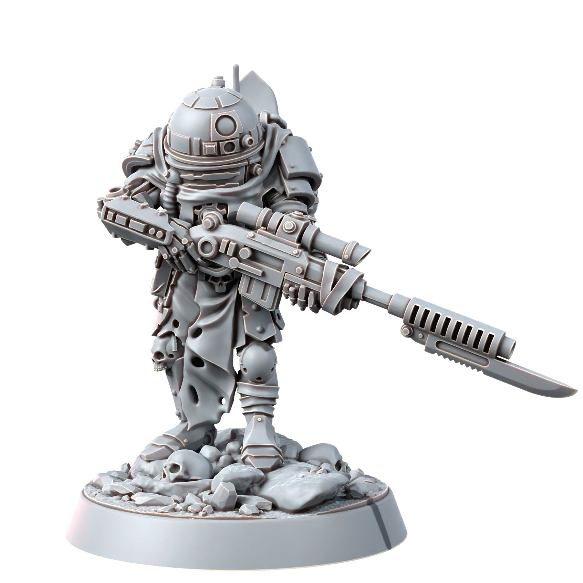 HQ resin miniature in 40k Heroic scale with 32mm Scenic base.